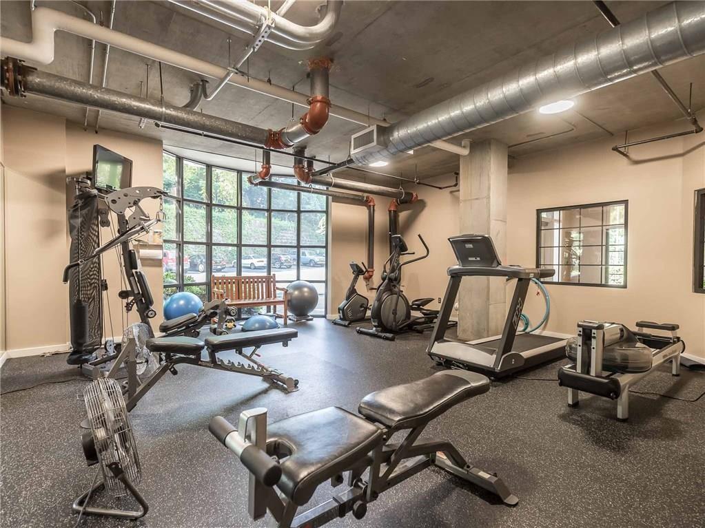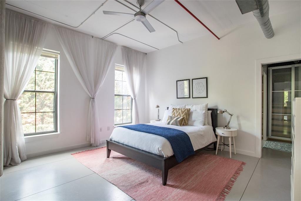 Fabulous modern Loft with exposed brick, soaring ceilings, and great views in the heart of Atlanta! This light filled 1 bed 2 bath w/ bonus space that can be made into 2nd bedroom, features a fully updated chefs kitchen w/ concrete counters & stainless appliances including a sub-zero fridge. Right across the street from Central Park and a short walk to Ponce City Market, Beltline, O4W Park. Large master bedroom with custom built-in closet system. Spa-like master bath with dual vanity, walk-in shower and soaking tub. Fitness center, sauna, gated entry, & covered garage.