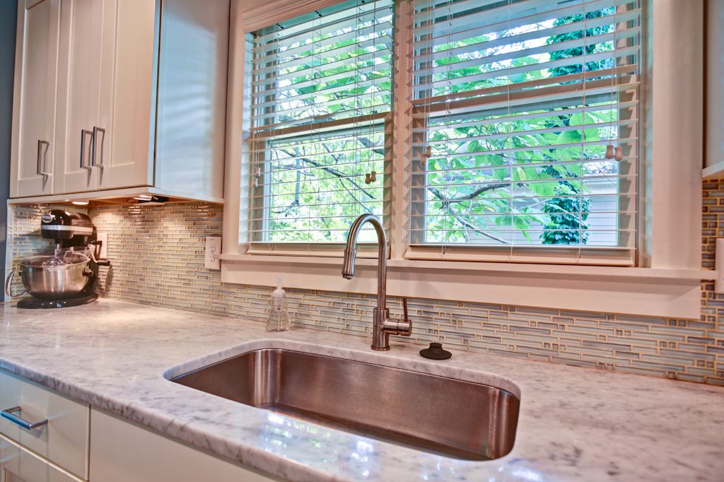 - Kitchen Cabinets White, View To Fmly Rm, Counter Top - Stone