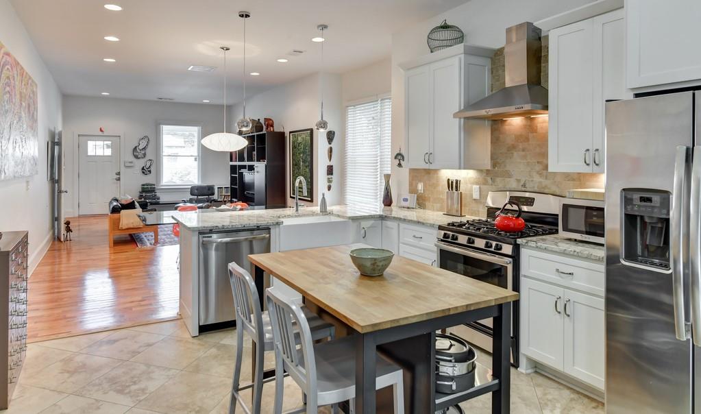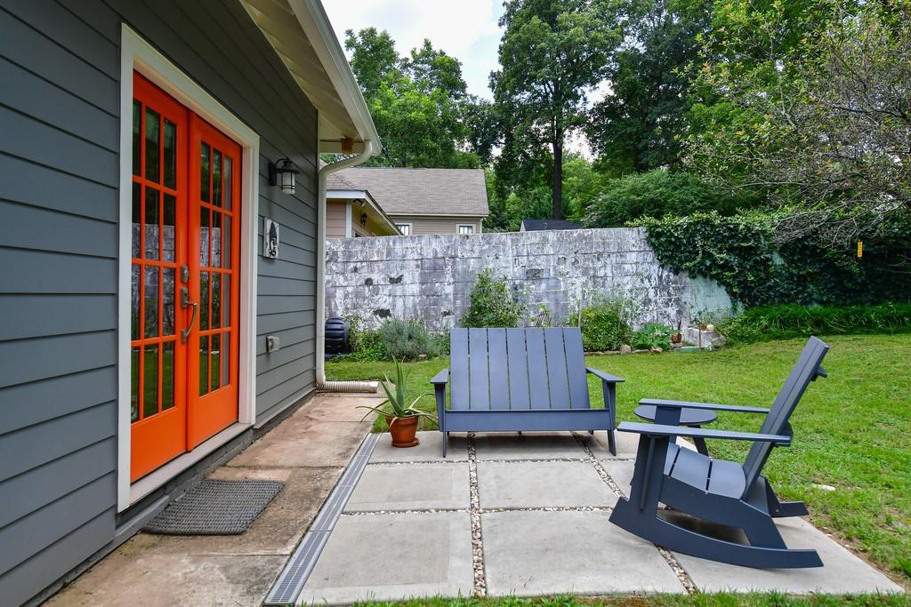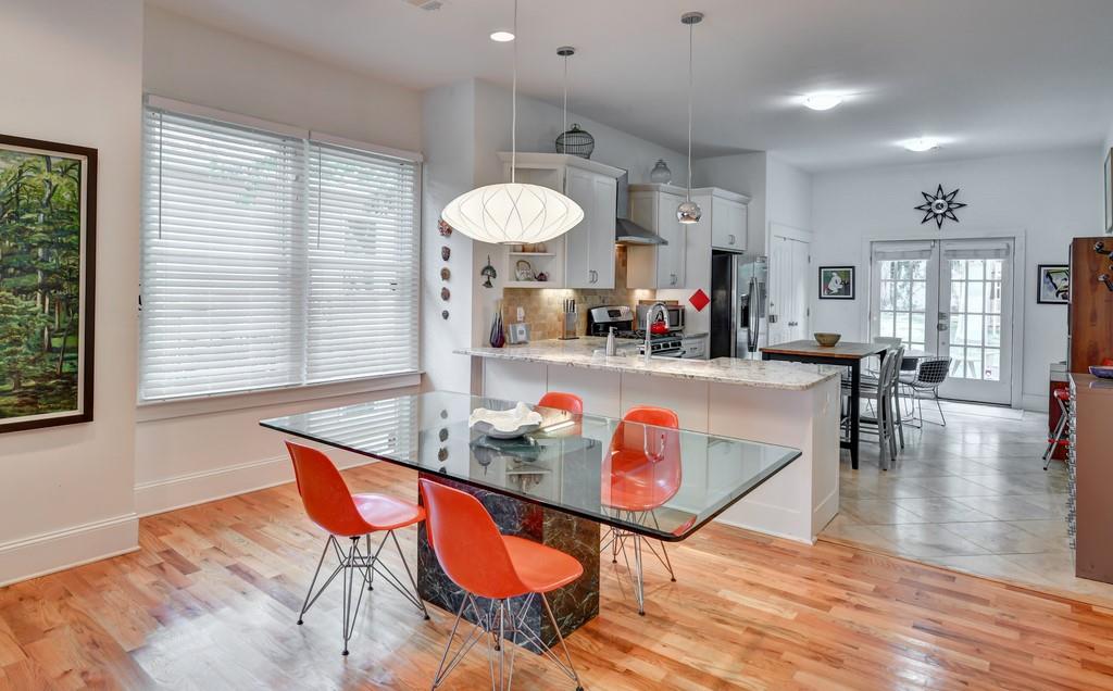 Wonderful 3/2 Kirkwood Craftsman bungalow! Inviting front porch, soaring ceilings, open and expanded floor plan with great natural light! Large living and dining areas and eat-in kitchen with white cabinets, granite countertops and French doors open to the rear yard! Great layout includes a large master suite with tiled bathroom, walk-in shower and double vanities; plus two spacious, secondary bedrooms w/full bath between. Enjoy the patio & private fenced rear yard and secure off-street parking. Easy walk to Kirkwood Village dining & retail!
