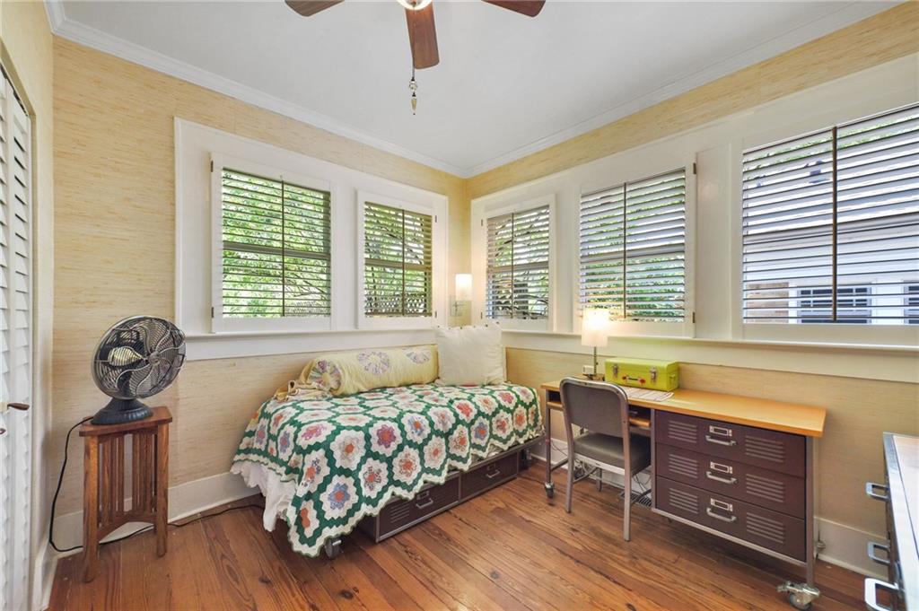 Don’t miss this one-of-a-kind work of art in Lake Claire— an artistic intersection of classic Craftsman charm and modern wow: rocking chair front porch, hardwood floors, original French doors, glass knobs, masonry fireplace surrounding a large, high-end design, modern main bath, with a Zen garden in the back you won’t want to leave. It truly is a work of art. It has been renovated with every detail in mind. The same owners have loved and meticulously cared for this home for 31 years. *Technically this is a 3 BR /1.5 bath, but we don’t want anyone to miss seeing this stunning home.Top-notch renovation of kitchen in 2004 installed custom concrete counters, heart of maple cabinets with tons of functional storage space, built-in wood paneled sub-zero fridge, & pull out stainless counter to create more work space. The classic Craftsman home surrounds a centrally located, luxurious, clean modern bathroom designed by KIA Group. It has concrete walls, floor and ceiling, a sunken tub & rain shower. The design, with no grout anywhere, toilet off the floor, and no shower doors, makes for super easy cleaning & upkeep. Upgraded features from Sonoma Forge & Restoration Hardware complete this masterpiece! The half bath off the master bedroom provides extra convenience and much functionality. Refreshing natural light engulfs the large sun-room / extra family room addition in the back that leads to the stunning Zen garden — feel free to stay awhile in either. Notice the artfully designed u-joint fence & gate around back porch, the shed for extra storage, and art-inspired outdoor meditation / work space! Bonus features: Attic w/ plenty of room for storage, new systems, xeriscaped front yard, parking for 2 cars, & short walk to East Lake Marta Station, Candler Park, many parks, and restaurants.