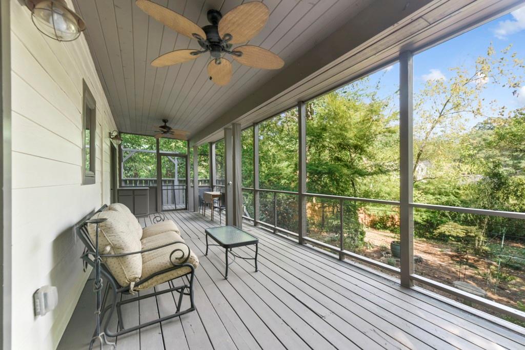 Live in this spacious, bright, 3 BR / 2.5 Bath + bonus room home in Oakhurst, one of Atlanta / Decatur’s best neighborhoods & walk to every school from K-12 & to the East Lake Marta Station just two blocks away. Relax in this lovely renovated home with updated kitchens and baths, a huge back porch that runs the entire length of the house & a covered / screened porch that also runs the entire length of the house. New roof, new high efficiency 17 seer HVAC, freshly renovated kitchen, private, peaceful, fenced in & well landscaped backyard with green galore and many birds!