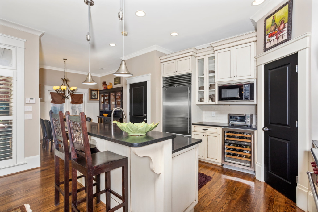 Extremely well built, all brick, John Willis home with 7 porches and balconies, 3BR / 3.5 baths PLUS a bonus room / office PLUS a huge enclosed patio PLUS a sitting room area in the main bedroom, on super quiet street, right next to the green space that you get to enjoy, but not mow, and all of this in the Mary Lin Elementary School district / Grady Cluster!!! This is super large 3BR / 3.5 bath home (+/- 2513 SF) that uses the SF extremely well to make the house feel much, much larger, and super functional for many uses! The home has high ceilings, 10’ on the main level, lovely hardwood floors, an open floor plan. The kitchen has granite countertops, white cabinets, a high-end appliance package, and a breakfast bar / island that is perfect for eating or entertaining! The dining room / area has French doors that open to the expansive patio, as does the living room. The patio is one of the largest and most functional, enjoyable patios in town – it is perfect for entertaining or for pets or children. All the bedrooms are on the second floor. The main bedroom is huge and has an extra space for sitting, reading or exercise, two Juliette balconies overlooking the green space, a porch overlooking the courtyard, a spa-like master bath suite, and an oversized closet that has natural light and FIVE different sections for clothes! All the bedrooms have their own private bath and one of the bedrooms has a private porch off the front! The 2-car garage has been upgraded with epoxy flooring and super functional storage spaces.