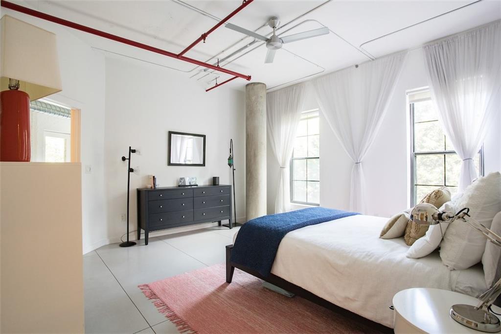 Fabulous modern Loft with exposed brick, soaring ceilings, and great views in the heart of Atlanta! This light filled 1 bed 2 bath w/ bonus space that can be made into 2nd bedroom, features a fully updated chefs kitchen w/ concrete counters & stainless appliances including a sub-zero fridge. Right across the street from Central Park and a short walk to Ponce City Market, Beltline, O4W Park. Large master bedroom with custom built-in closet system. Spa-like master bath with dual vanity, walk-in shower and soaking tub. Fitness center, sauna, gated entry, & covered garage.