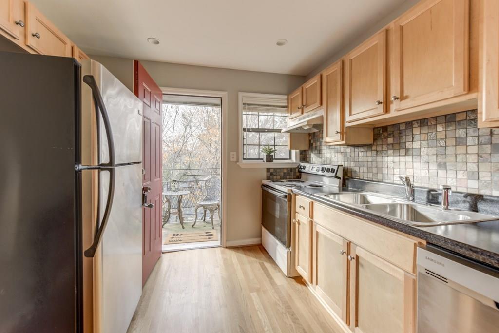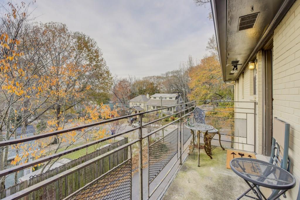 Quiet, end-unit condo w/ extra windows & lots of natural light. Freshly painted & move-in ready! Hardwood floors in living room & kitchen! Kitchen has wood cabinets, lots of counter/cabinet space, & a breakfast area! Large master bedroom, large enough for desk/office. Back porch is like a tree house in the summer & has skyline views in the winter! Live your life in the heart of Candler Park! Bike or walk from the nearby Freedom Park (just 3 blocks away) right to the Atlanta Beltline Eastside Trail and even Piedmont Park. One of the best condos in this complex for sure!