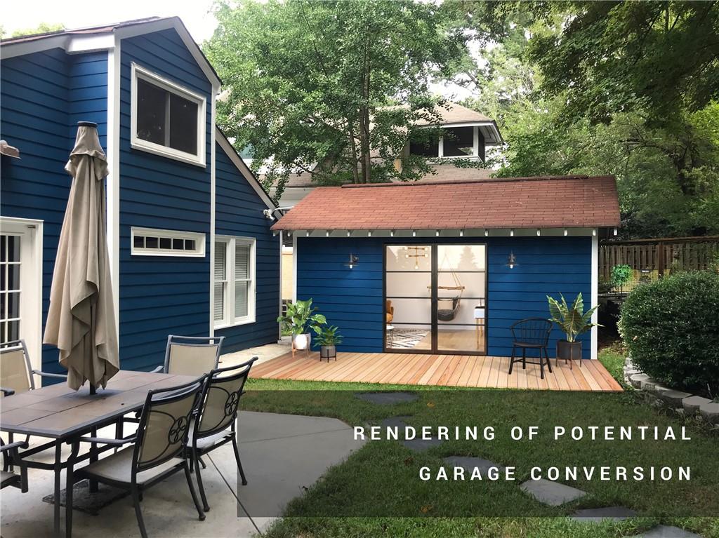 Southern charmer on one of the most beautiful and popular streets in Lake Claire. Enter into the open front living area that features wonderful hardwood floors, modern light fixtures and a light filled bonus room/office. The master suite has towering ceilings & a gorgeous master bath with clawfoot tub, walk-in shower and dual vanity. The kitchen opens to vaulted, family room complete with a lofted living space and looks out to the serene backyard with patio, fire-pit area & children’s play yard. Walk to Mary Lin Elementary, Fraser Forest, Marta and shops & restaurants. Enjoy the neighborhood from the fabulous front porch overlooking the street. New Hardie board siding around the entire house and garage. The garage is not accessible for a car from the driveway anymore, but functions as a large storage shed or can easily be converted into an outdoor office or entertainment space. Separate electrical panel for the garage. Shared driveway has a “Y” at the front so this home can park it’s car in the driveway and charge at the electric car charging station installed at back. Large basement has been fully concreted. Front yard has very high-end artificial grass that looks and feels like the real thing. You don’t want to miss seeing this one!