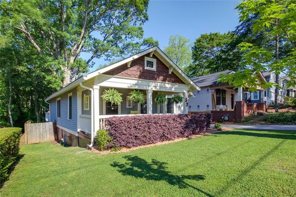 KIRKWOOD GEM – This well-maintained 1920s renovated craftsman bungalow combines modern amenities with old world charm on a rare deep lot in Kirkwood. Incredible location overlooking Coan Park, walk to Kirkwood Village, bike to the Beltline. Features include an open concept layout, hardwood floors throughout, covered front porch, 4 original decorative fireplaces, and master suite w/ walk in closet and private bath w/ double vanity. The expansive back deck wrapping around the Oak tree, adds a relaxing and unique additional living space perfect for dining and lounging.